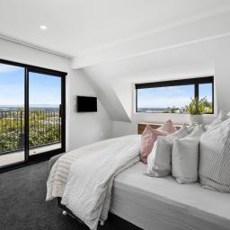 With three double bedrooms plus a separate study (or optional fourth bedroom/media room), there's flexibility for families, guests, or those working from home. Both bathrooms are beautifully tiled with underfloor heating, sleek tapware, and glass showers, while the main includes a feature bath. The primary suite offers a private retreat, complete with a tiled ensuite, balcony, and stunning views.