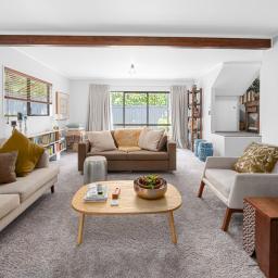 The open-plan living, dining, and kitchen area enjoys all day sun and flows easily to a wide front deck and private west facing garden, the ideal spot for summer evenings with friends. Inside, the inviting lounge features sliding doors that connect seamlessly to the outdoors, while a heat pump ensures comfort through every season. The master suite is a true retreat, complete with walk in wardrobe and a ensuite. Add in generous storage, a large brand new renovated laundry, and low maintenance grounds, and you have a home that's both stylish and practical.