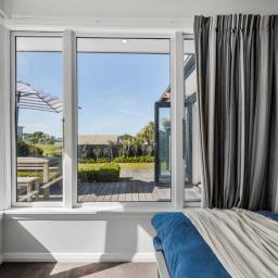 Expansive wrap-around decking and a flat lawn provide the perfect setting for entertaining, playing or relaxing while taking in glimpses of the estuary and surrounding hillsides.