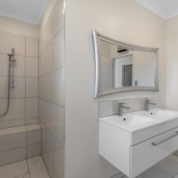 • Main bedroom with two walk-in robes, ensuite with double sinks, tiled shower, and under tile heating