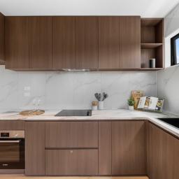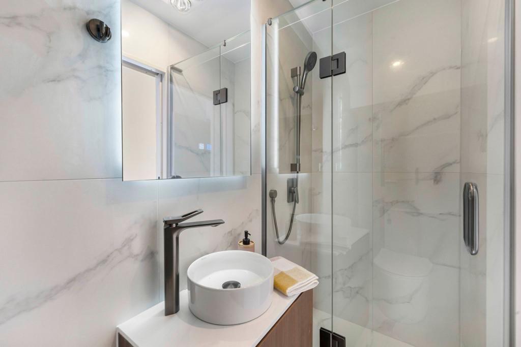 Spread across three well-considered levels, each home offers the perfect balance of space and practicality. The middle level forms the heart of the home, an open-plan kitchen, dining, and living area that connects seamlessly to a large, expansive deck, ideal for entertaining or unwinding in the afternoon sun. A conveniently positioned powder room on this level enhances everyday comfort. The kitchen showcases sleek finishes and Bosch appliances, perfectly blending form and function.