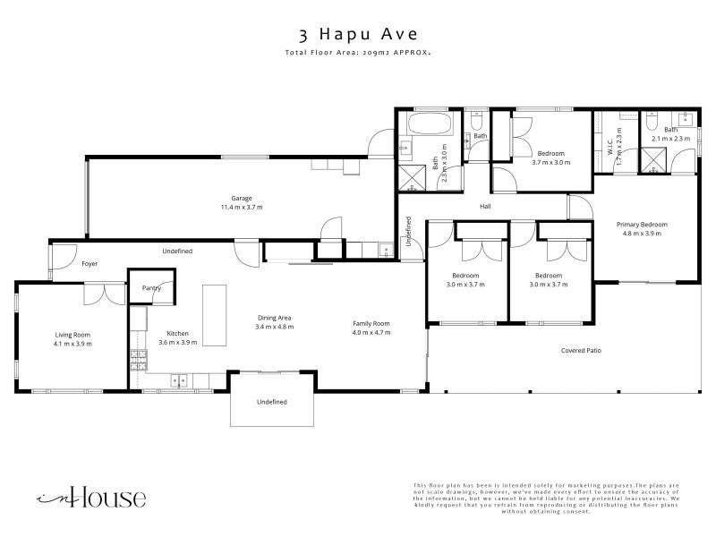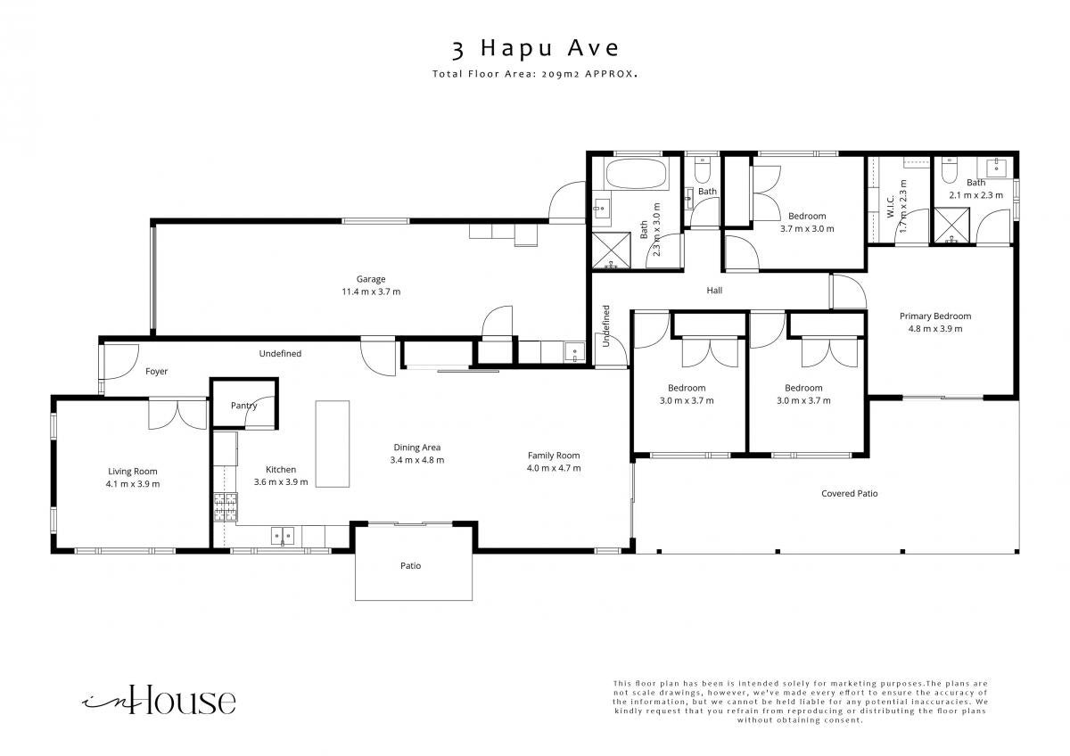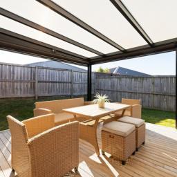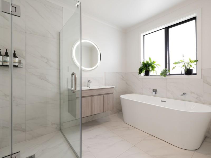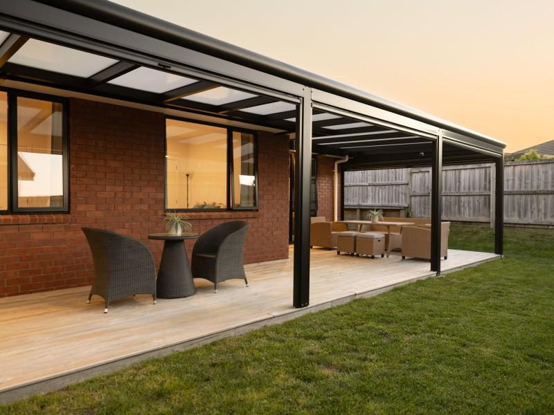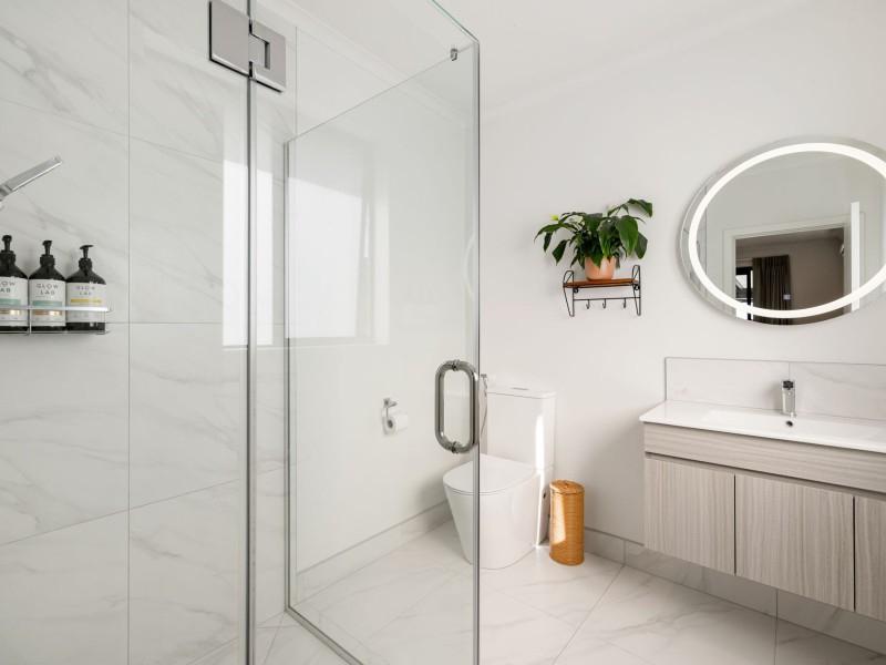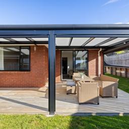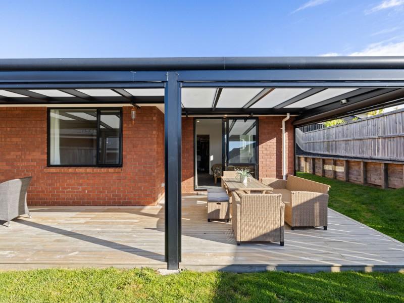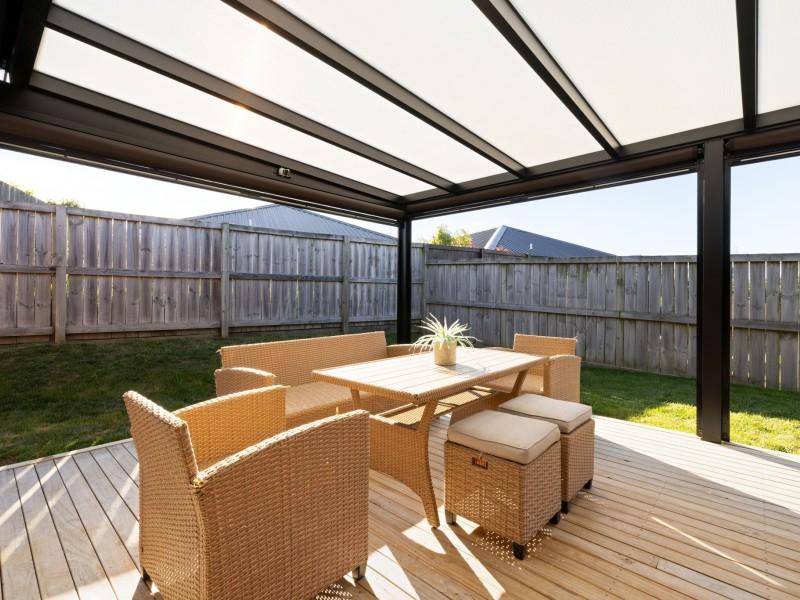 Elegant, tiled bathrooms add a touch of sophistication, while the ducted heat-pump system ensures warmth and comfort throughout all seasons. A covered pergola with outdoor blinds extends your living outdoors, creating a sheltered retreat year-round.