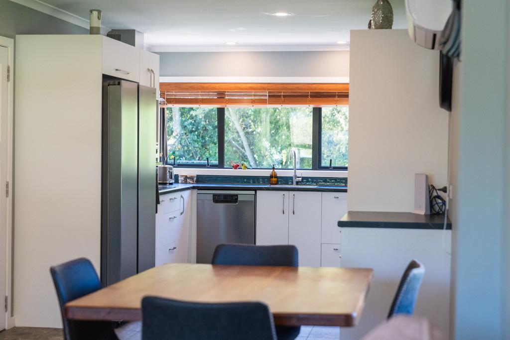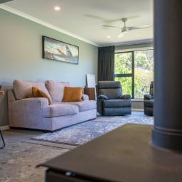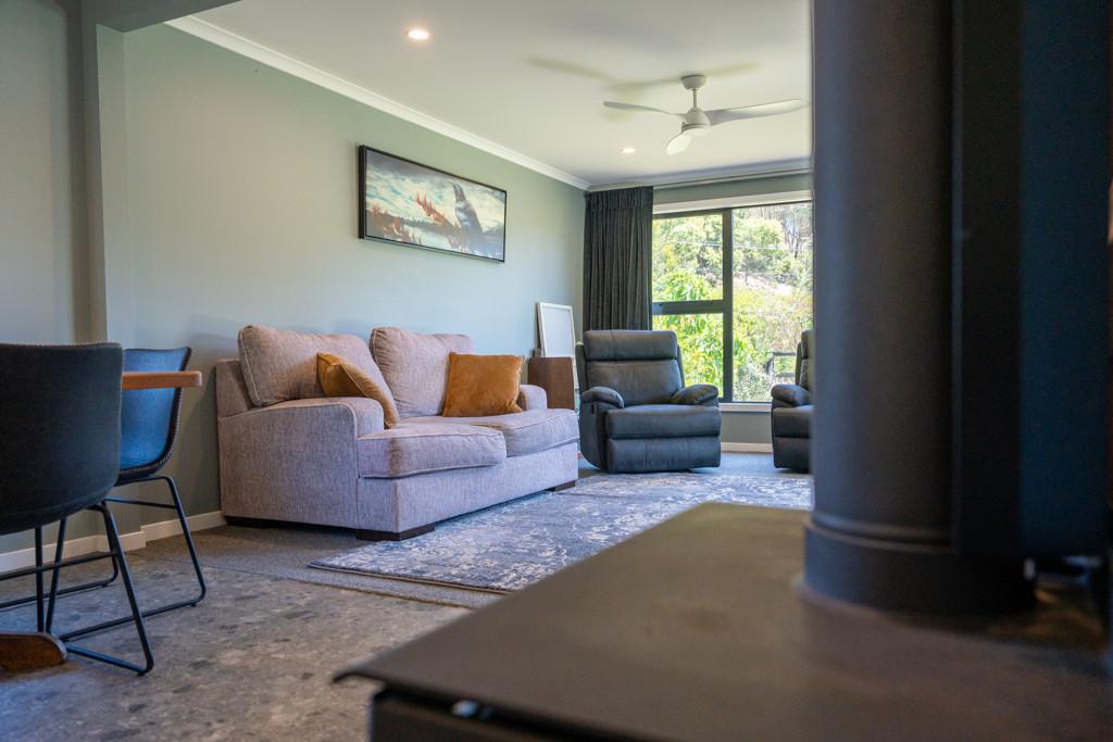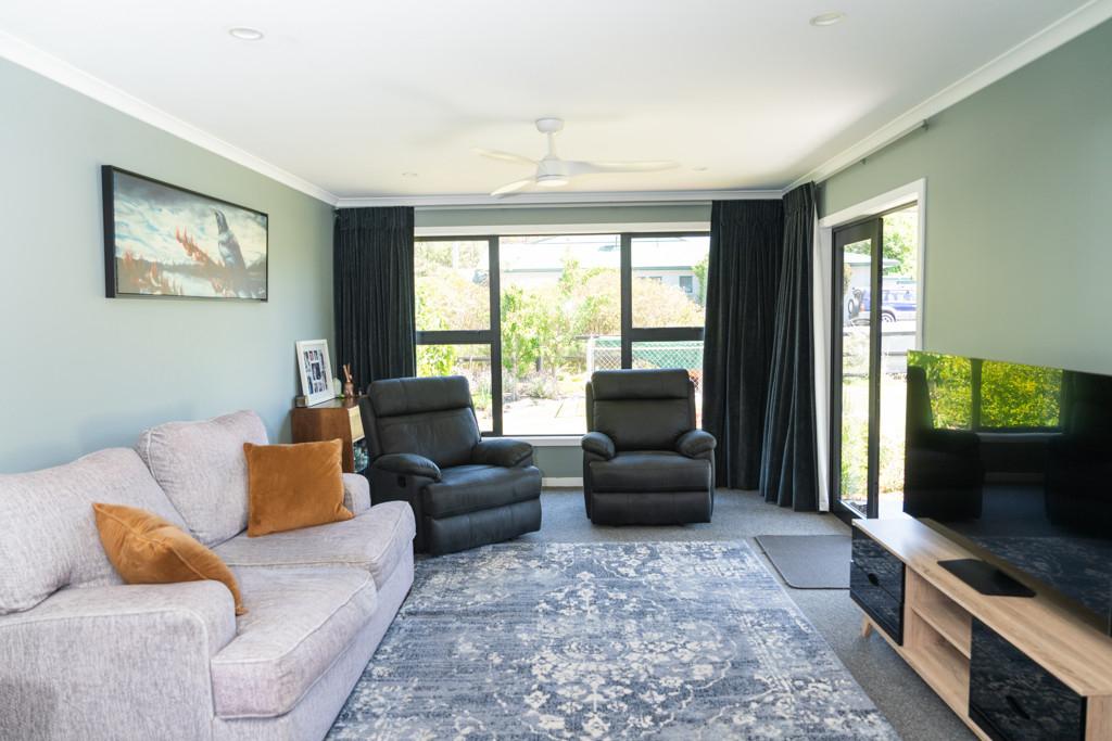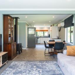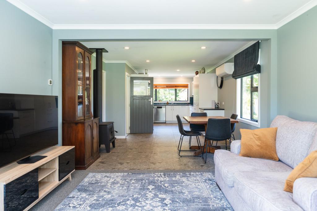 Set on a beautifully established quarter-acre section, the gardens are bursting with fruit trees - the perfect setting for family life or a quiet retreat. Inside, recent renovations make living easy and comfortable, with a wetback wood burner, heat pump, and ceiling fans in both the lounge and bedrooms. An oversized garage allows for both storage and tinkering on projects
