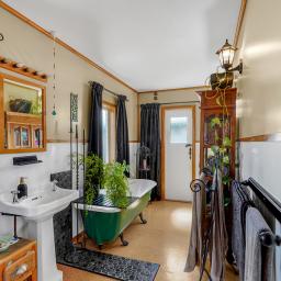 The home continues to impress with a bathroom that features a classic claw foot bath, ideal for unwinding after a long day.