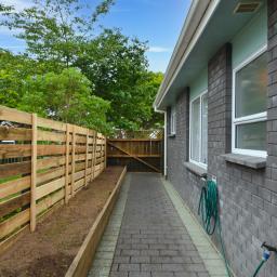 A private, sun-filled backyard offers space for a small garden.