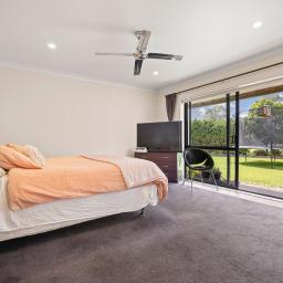 Outdoors, the property shines. Manicured lawns blend into productive gardens and seven fully fenced paddocks with water troughs. There's a four-car implement shed, double internal-access garaging, and ample off-street parking for visitors or machinery. The land has been lovingly cultivated to offer fruit trees, fresh vegetables, and a self-sufficient rhythm of living that's hard to find so close to town.