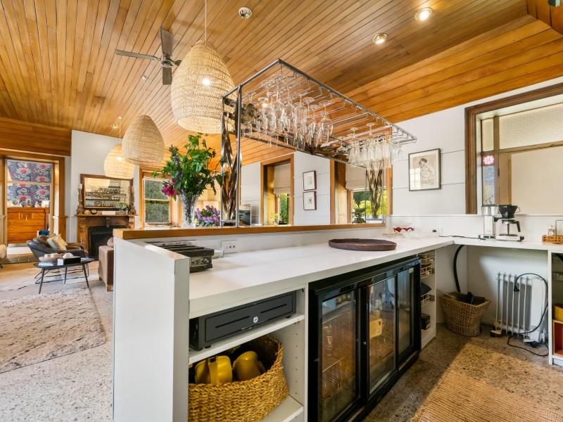 The main homestead exudes country sophistication, featuring two bedrooms, a commercial-grade kitchen, and open-plan living highlighted by polished concrete floors and striking T&G cathedral ceilings. Gather around the open fire for marshmallows on winter nights, or enjoy the warmth and efficiency of the diesel fire. Every detail speaks to thoughtful design and careful restoration.