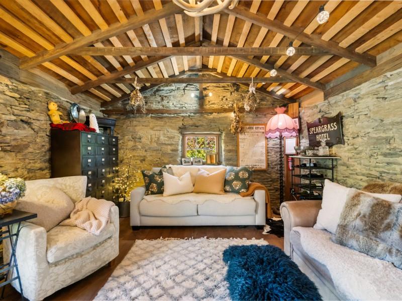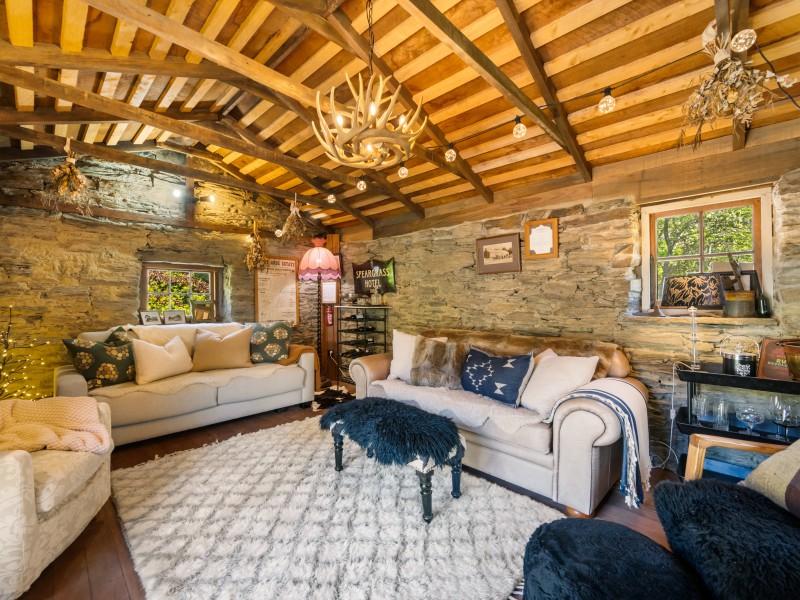 Outside, the property opens to beautifully landscaped gardens, complete with a spa pool and a distinctive schist clad outbuilding the "Whiskey Room" where you can cosy up with the finest Malt and stay warm with the old coal range — a perfect setting for relaxed evenings or intimate gatherings. With ample parking and a backdrop of rugged schist and rolling hills, the Speargrass Inn offers an idyllic venue for weddings, retreats, or private events.