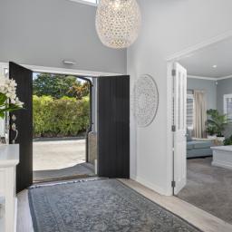 Double front doors lead into an impressive foyer with a soaring ceiling imarting a sense of grandeur and openness . The generous open plan living area seamlessly integrates the stunning kitchen with the family space, making it the ideal setting for casual gatherings and everyday family life. The design flows effortlessly onto an impressive patio, thoughtfully created for year-round entertaining. Whether hosting a summer barbecue or enjoying a quiet evening under the stars, this outdoor area is bound to impress guests and family alike.