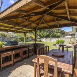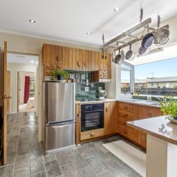 The kitchen is neatly presented with generous storage and bench space, creating a functional and welcoming space for everyday living. Adjoining dining and living areas form the heart of the home which is light, airy and relaxed, ideal for family time or entertaining friends. A short step outside reveals a covered BBQ and seating area, offering a sheltered and private spot to enjoy meals, morning coffee or a peaceful moment in the fresh air.