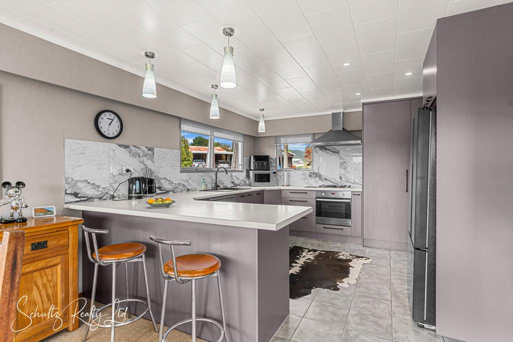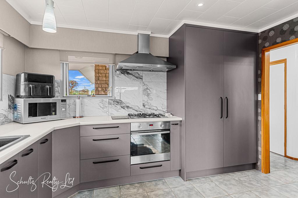 At the heart of this property lies a beautifully maintained brick-and-tile home designed for comfort and ease. The wide entrance welcomes you into a modern and stylish kitchen, well-appointed with ample cabinetry, generous bench space, a gas hob, and an under-bench oven. The open-plan design seamlessly connects the kitchen, dining, and living areas, creating a warm and inviting atmosphere, complete with a wood burner and heat pump to ensure year-round comfort.