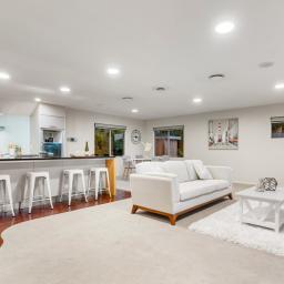 The open-plan kitchen, dining, and family zone form the heart of the home, with large windows capturing light and views, while the separate formal lounge opens to a vast entertainer's deck - ideal for soaking in the Sky Tower and Harbour Bridge vistas.