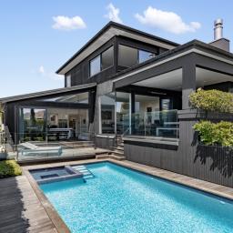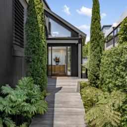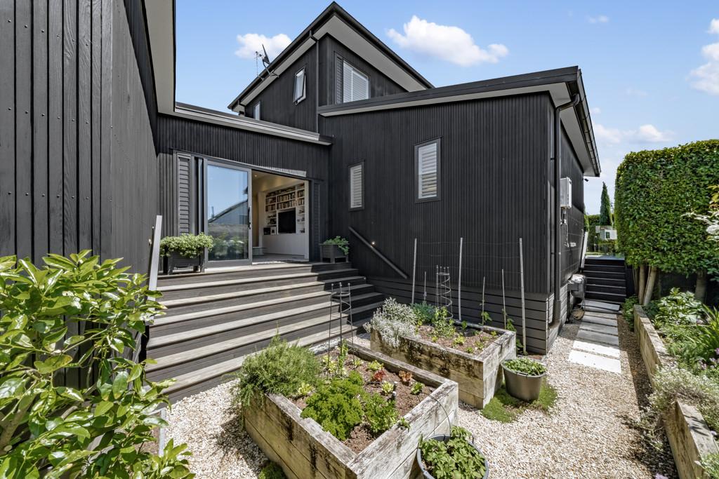 With its striking dark cedar facade and elevated, sun-filled outlook, this Orakei home makes an unforgettable first impression.