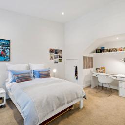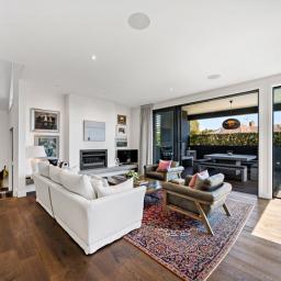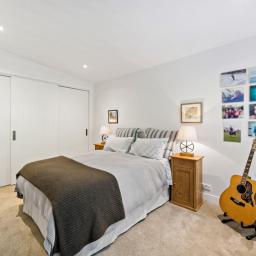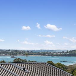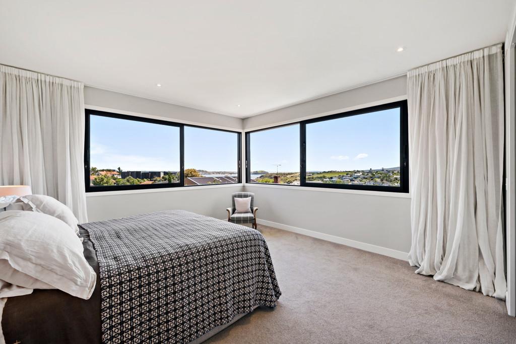 On the main level, three sizable bedrooms, a family bathroom, and a guest toilet are thoughtfully separated from the living areas, creating a peaceful retreat for family and guests. Upstairs, the master suite is a private sanctuary, complete with a generous bedroom with sweeping views over the Waitemata Harbour and Orakei, walk-in wardrobe, and elegant bathroom. A mezzanine provides a large, quiet study or reading space.