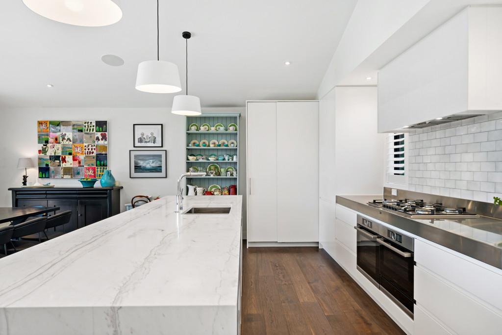 Built just seven years ago from solid materials including steel, concrete block, cedar, Coloursteel, and kwila - but presenting as new - this home is designed for modern living. It works wonderfully for all ages and stages of family and guests who come and go. The main floor is filled with natural light and offers flexible living, with expansive kitchen, dining, and living areas that flow seamlessly - perfect for both relaxing and entertaining. The high-spec kitchen is a cook's dream, featuring two ovens, gas hobs, and a large scullery, making hosting effortless. Below, a substantial four-car garage provides ample storage and versatility, including use as a gym or games area. The house is private and quiet, nestled behind high hedges and security gates, with additional off-street parking for family and guests.