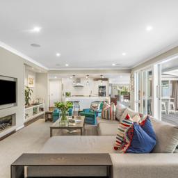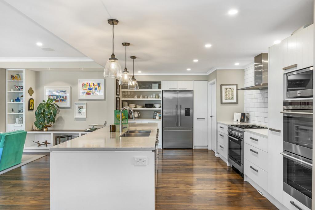 Generously scaled at 379m2 (with over 300m2 of single-level living), the home unfolds through expansive open-plan spaces designed for effortless living and sophisticated entertaining. Hardwood floors ground the main living domain, where a family lounge and culinary kitchen create the perfect everyday hub. Entertainers will appreciate the scullery, premium appliances and three ovens - a dream for those who value serious cooking capability. Two gas fireplaces and two heat pumps ensure year-round comfort.