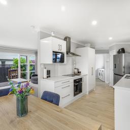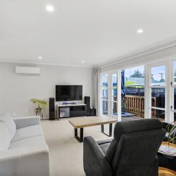 Warm and comfortable all year round, the home includes ceiling and underfloor insulation, a ground moisture barrier, and a well-placed heat pump.