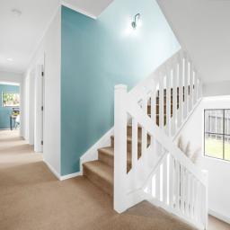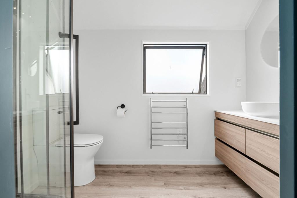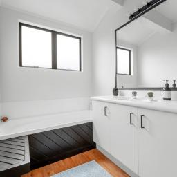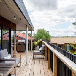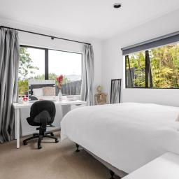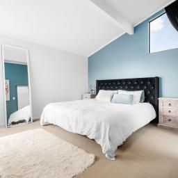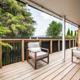 Inside the entertainment zone of the interior reveals an open-plan layout encompassing the living, dining and a well-appointed kitchen, equipped with large stud ceilings in the living and dining further enhancing the sense of space. The brand-new deck spills from the living and is a true highlight offering uninterrupted northern views. The master room is ideally situated on the top level with its own wardrobe and ensuite while two additional bedrooms are complemented by a family bathroom and separate laundry on the second level. Added convenience is further enhanced with the double car garage and foyer entrance on the ground storey.