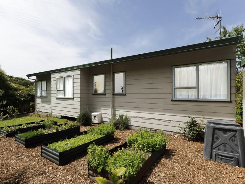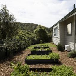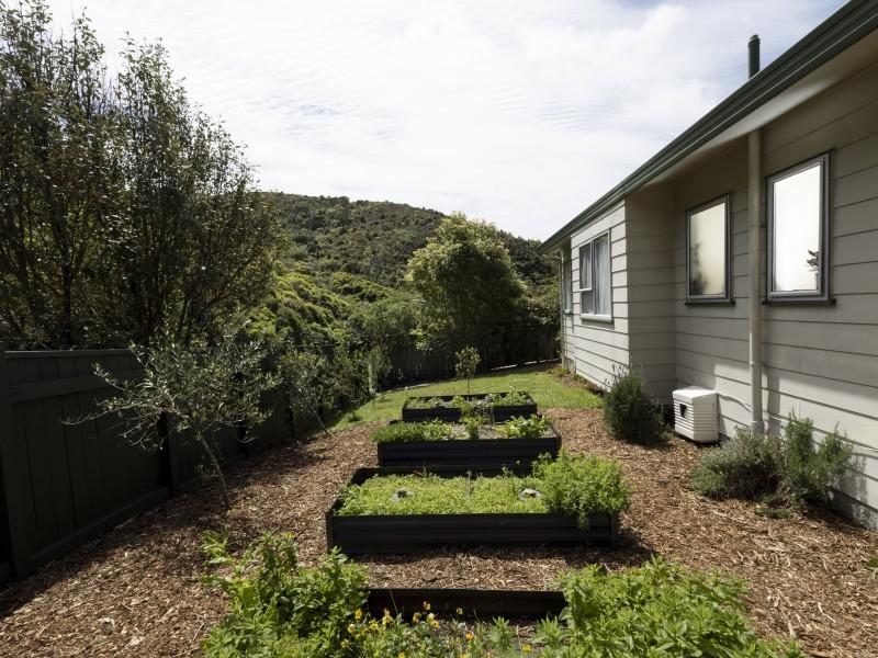 There's a flat lawn with plenty of room for the trampoline, bush surrounds for shelter and privacy, raised vegetable beds, plus new olive trees, fejoas and lemons.
