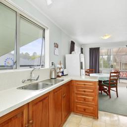 The spacious, sun-soaked open plan living and dining area offers a wonderful setting for everyday living and entertaining, complemented by a very functional kitchen designed for convenience.