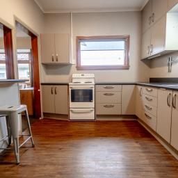 Step into a home that feels alive. Sunlight dances through the leadlight windows, casting colours across the rich timber features that give this 160m² bungalow its soul. At the heart of the home, a spacious open-plan kitchen and living area invites laughter, gatherings and quiet moments alike.