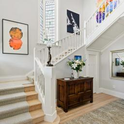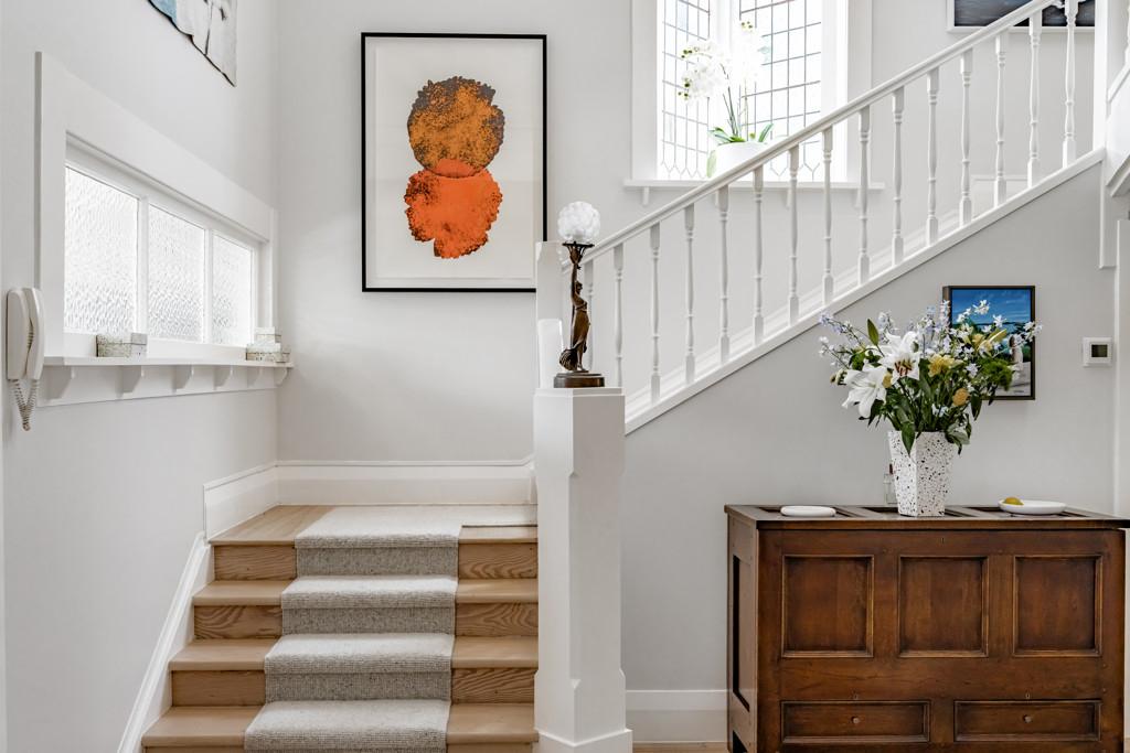 From the first impression, every detail delights. The striking lofty void to the second storey with its eye-catching staircase and stained glass windows sets the tone for the style and grace that flows throughout. The main level is thoughtfully designed for flexible family living, a refined formal lounge with a bay window and moulded fireplace complements the relaxed family room, while the dining area unites the spaces with a seamless flow. The modern kitchen, overlooking the lush rear garden, opens to a Virgina Creeper covered pergola, a tranquil spot for long lunches or evenings alfresco beneath the greenery.