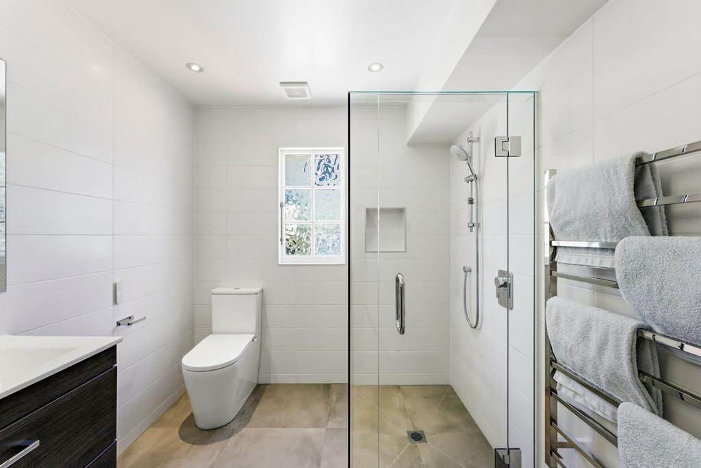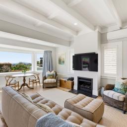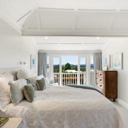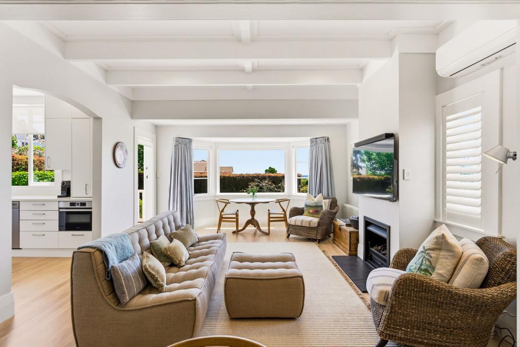 Also on this level are a convenient powder room, a dedicated study, laundry, and internal access to the garage. Upstairs offers a peaceful retreat, complete with three well-proportioned bedrooms including the master suite with a private balcony and views of Rangitoto and Waitemata Harbour. Muted tones, soft textures, and interesting ceiling lines create a calming atmosphere ideal for rest and rejuvenation.