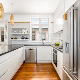 • A stylish modern kitchen with good cupboard and bench space. Induction cooking