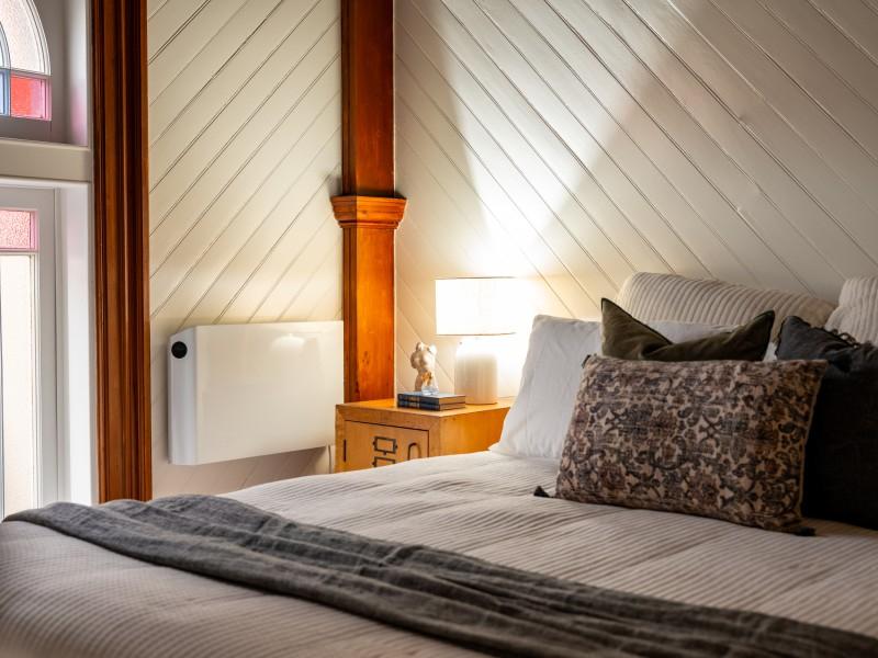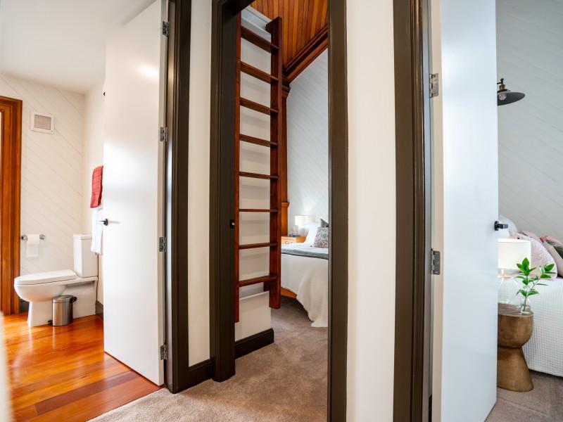 - Two deluxe double-bedrooms with double-wardrobes and extraordinary loft space, complete with bespoke wooden ladder for access and lovely west-facing town belt view from the master