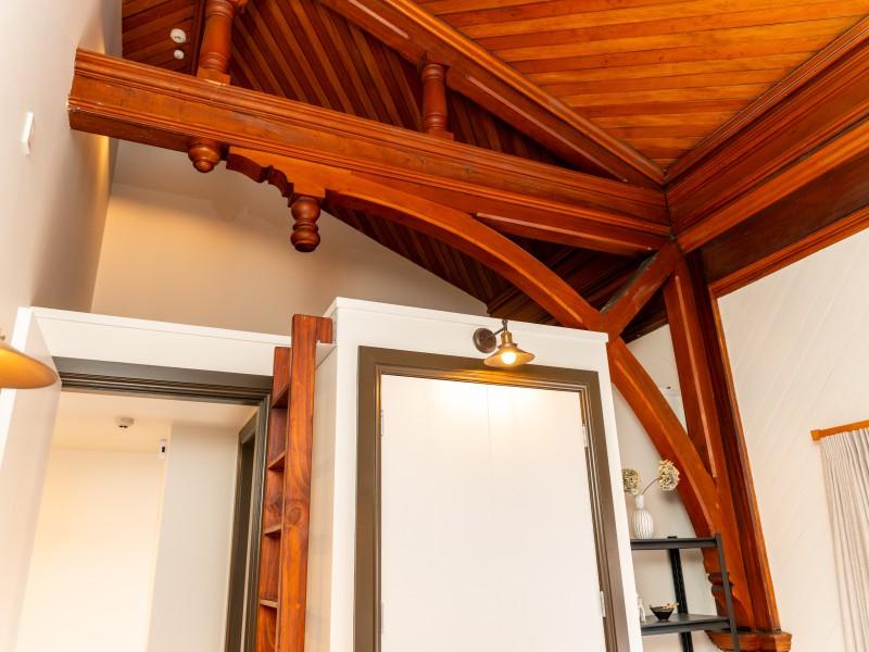 - Grand character that combines an exceptionally high stud upstairs and down with tongue-and-groove hardwood ceilings, ornate timber trusses, deep margin light sash windows and spectacular native timber joinery
