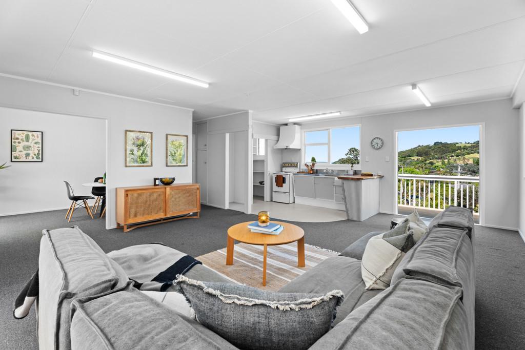 Elegantly balancing its commercial potential, the property is also consented for a two-bedroom home and a lockup garage, opening the door to a wide range of residential possibilities. Whether envisioned as a compact family residence, a peaceful holiday base, or a home-and-office combination, the site offers the space, orientation, and quiet outlook that make for relaxed island living. From its elevated position, a pleasant distant view stretches across Huruhi Bay, adding a sense of calm to the everyday.