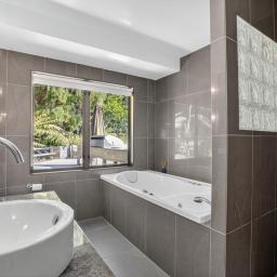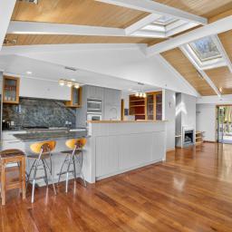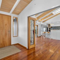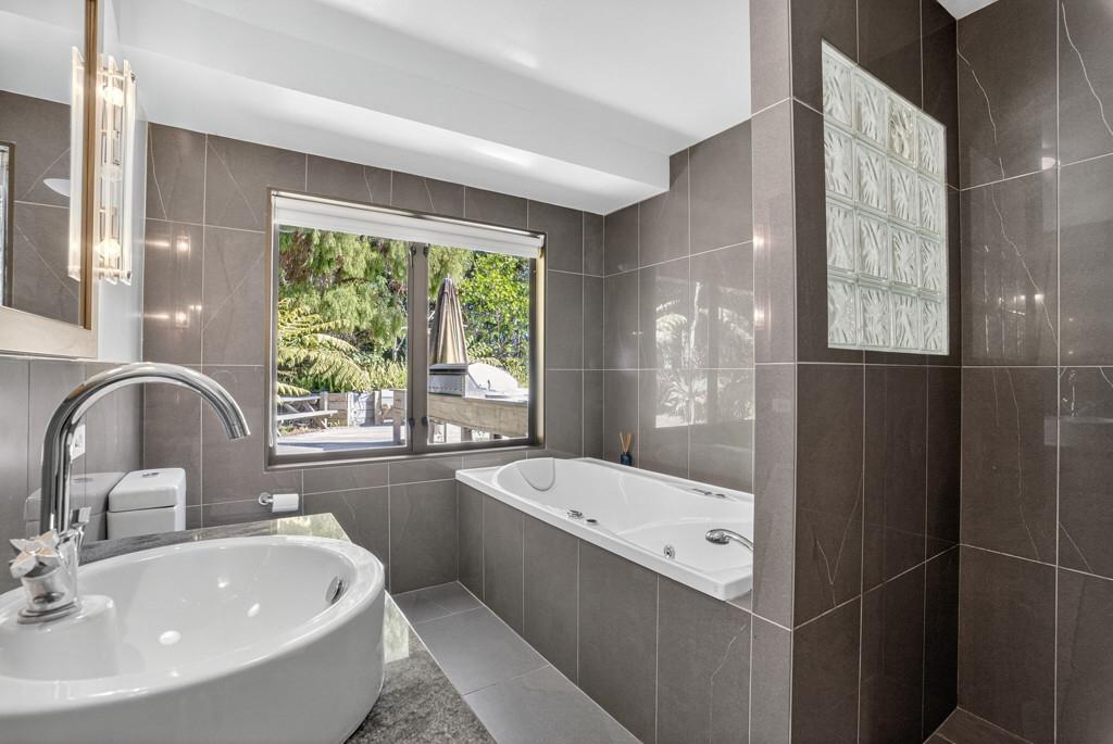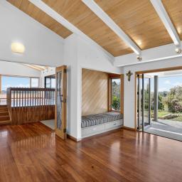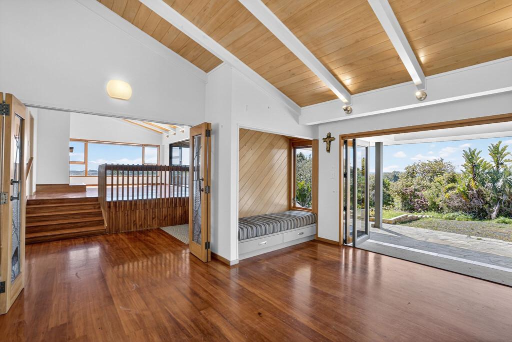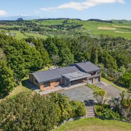 Set against a backdrop of established native bush, the split level four bedroom, three bathroom home is well positioned offering expansive views over the property and beyond to the Brynderwyn Ranges.