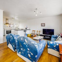 • Spacious open-plan living and dining area with a modern kitchen and breakfast bar