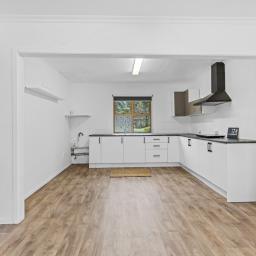 Spacious and flexible in layout. Upstairs, is the kitchen, dining lounge plus three beds and a bathroom, downstairs is the rumpus room with additional bathroom and kitchenette that the current owners were using as guest accommodation, this could be reconnected with internal access to upstairs as it has been in the past. A workshop and off-street parking add to the home.