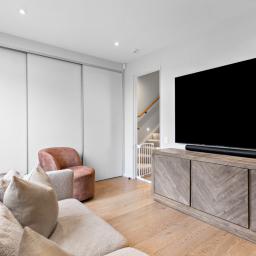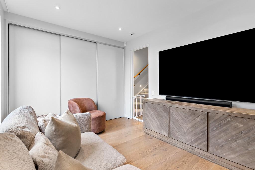 Upstairs, you'll find two generously sized bedrooms, including a master suite with a modern ensuite and a large family bathroom. The home's finishes throughout are of the highest quality-polished floors, ducted heat pumps (on both levels), and beautifully tiled bathrooms with underfloor heating elevate this property to the next level.