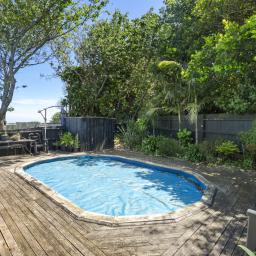 The swimming pool will be a hit over the warmer months, while the deck shaded by a grapevine invites you to sit back, relax, and soak in the serenity. There's even space for chickens, an established orchard, and stunning mountain and ocean views that complete this picturesque setting.