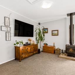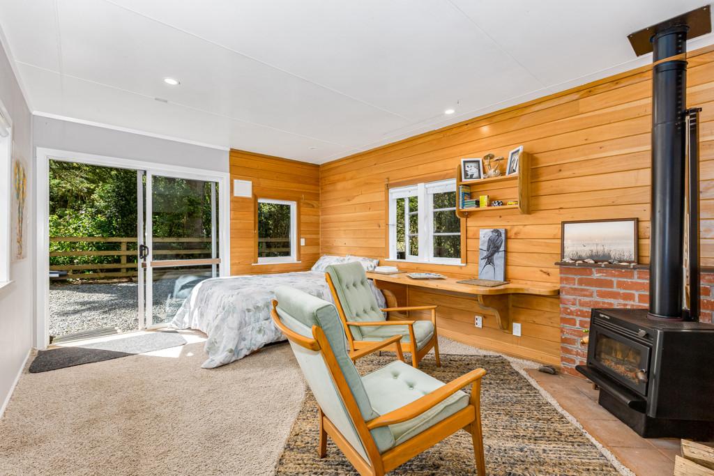 Functionality and comfort are equally well considered, with a separate laundry, two heat pumps, and a wood burner ensuring warmth throughout the year. Outdoors, a dedicated fire pit invites you to gather under the stars. Adding to the home's versatility is a detached sleepout or guest bach, complete with its own kitchenette, bathroom, and wood burner-perfect for extended family, a home business, or an Airbnb-style retreat.