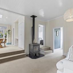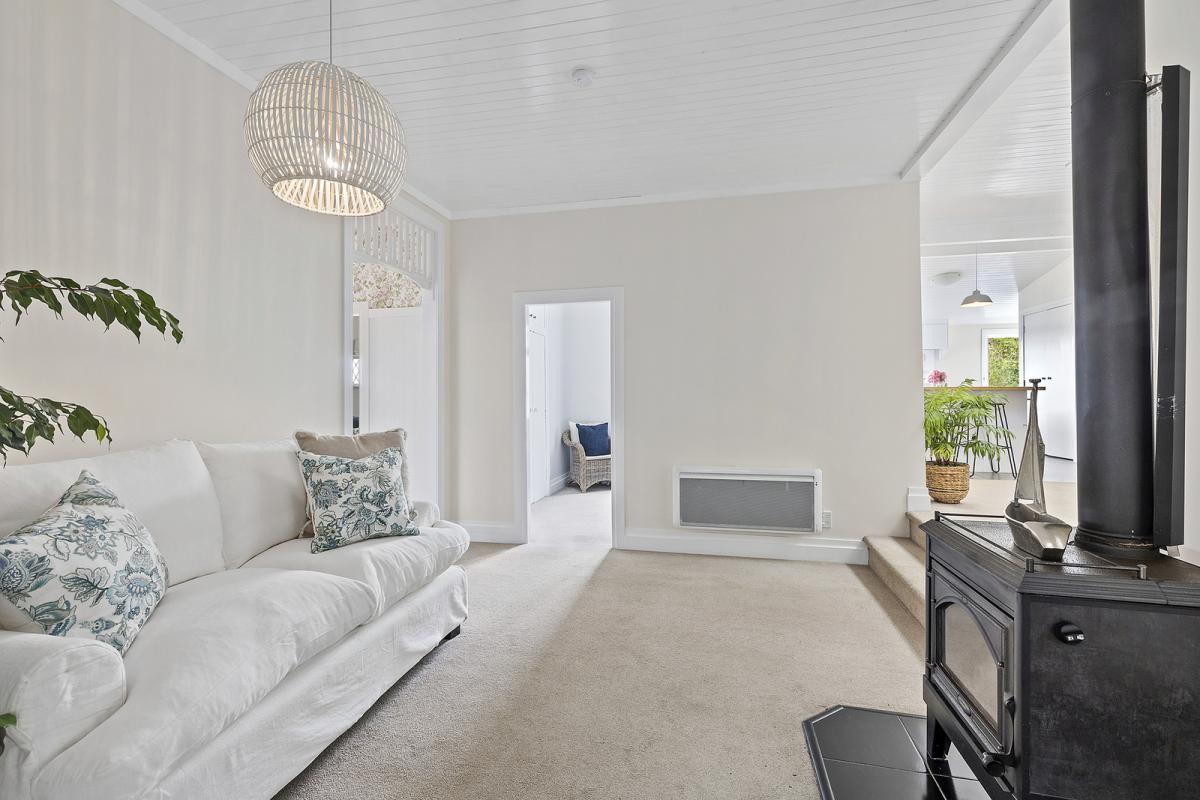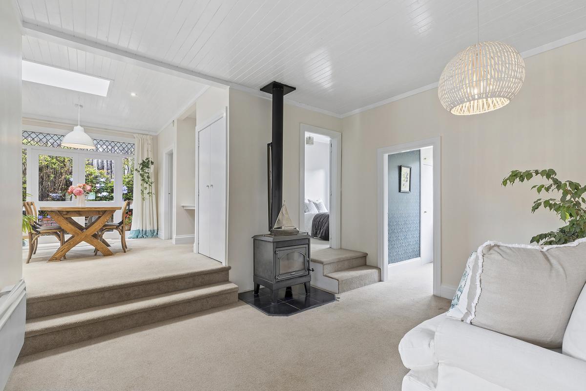 Inside, modern touches blend effortlessly with original features. The updated kitchen is the heart of the home, perfectly positioned with views. Interconnecting dining and living areas, ideal for entertaining or relaxing by the wood burner with wetback. High panelled ceilings and original stained-glass windows add warmth and personality throughout, while every room makes the most of the natural light and ever-changing outlook. The large separate formal lounge has doors opening up to the outside. Enjoy a spa or sit and sip a cider at the end of a busy day on the west facing deck.