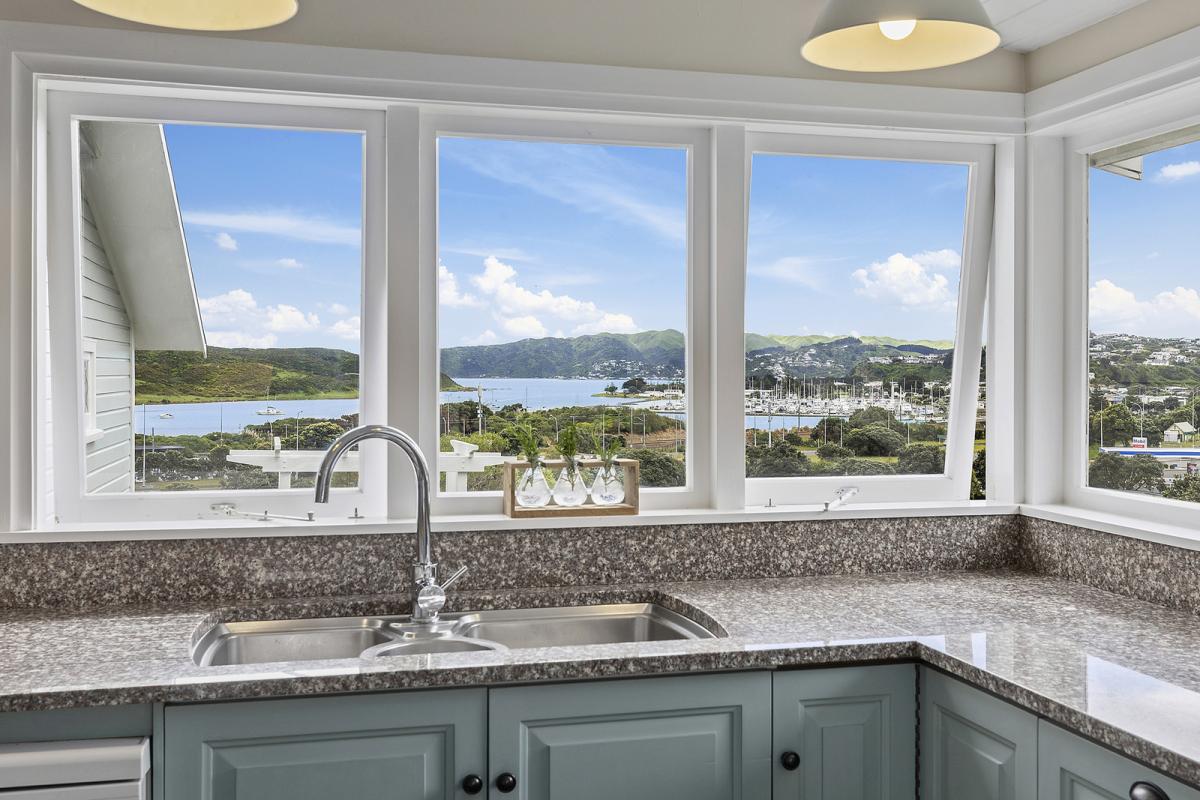 With access from both Paremata Crescent and Whitianga View, the setting is as practical as it is picturesque. Double garaging and generous off-street parking provide space for all the toys, from cars and caravans to boats ready for the water just minutes away.