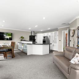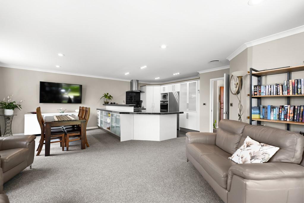 Designed with family living in mind, the home features two spacious living areas that provide flexibility for relaxation and entertaining. The modern kitchen sits at the heart of the home, connecting seamlessly with the dining and family zones, while large windows and sliding doors invite natural light and easy indoor-outdoor flow.