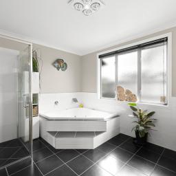 All four bedrooms are generously sized, with the master suite offering a walk-in wardrobe and ensuite. The remaining 3 bedrooms are serviced by a large family bathroom, complete with a spa bath for the ultimate relaxation at the end of the day. The internal access double garage adds everyday ease, while the landscaped grounds create an attractive setting for outdoor living. The property is fully fenced, providing security and peace of mind, and there's excellent off-street parking for family and guests alike.