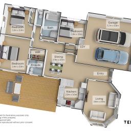 The open-plan kitchen and dining area flow out to a sunny deck — perfect for BBQs and entertaining. A separate living room, double garage, and family-friendly layout tick all the right boxes.