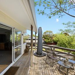 Meticulously cared for, the property offers privacy, established landscaped gardens, and all-day sun. Step inside to discover a light-filled open-plan layout where the modern kitchen seamlessly connects to the spacious dining and living areas. Sliding doors open to a sun-soaked deck, the perfect spot for entertaining or relaxing in the tranquil garden setting.