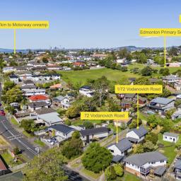 In zone for Edmonton Primary school (300m walk), Rangeview Intermediate, Rutherford College, St Pauls School (Massey). And, ACG Sunderland, Liston College, St Dominics Catholic School.