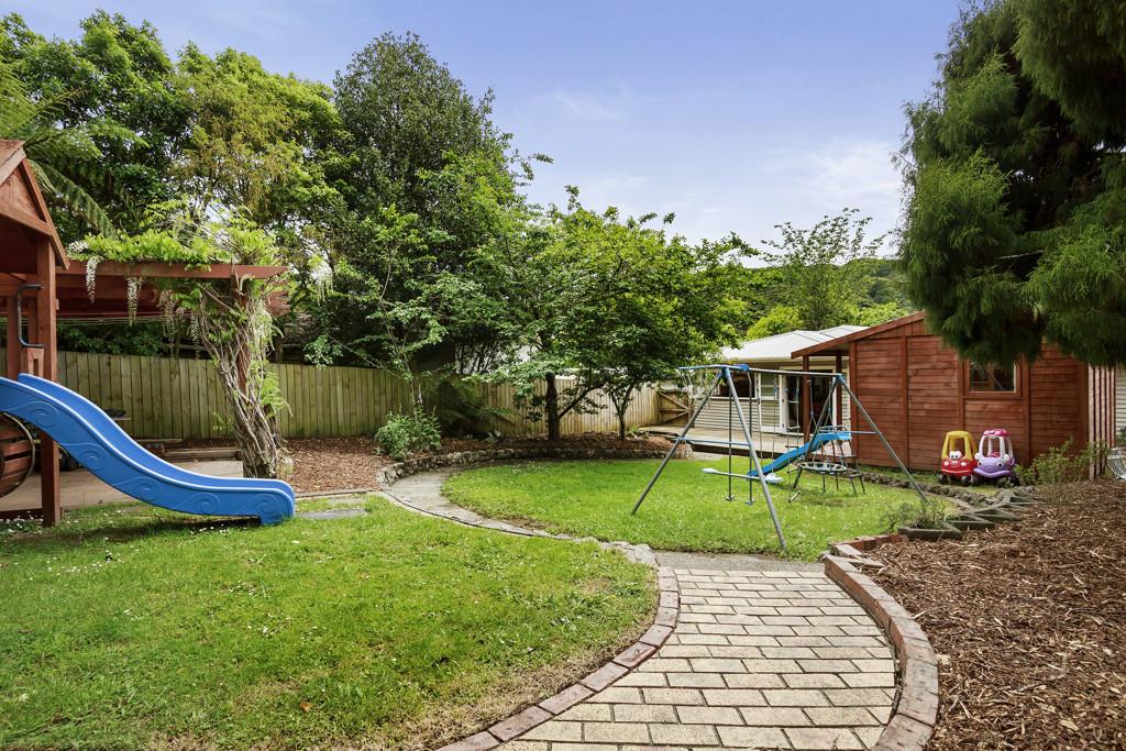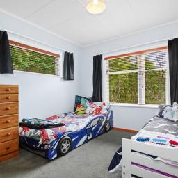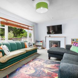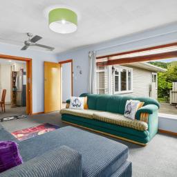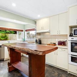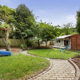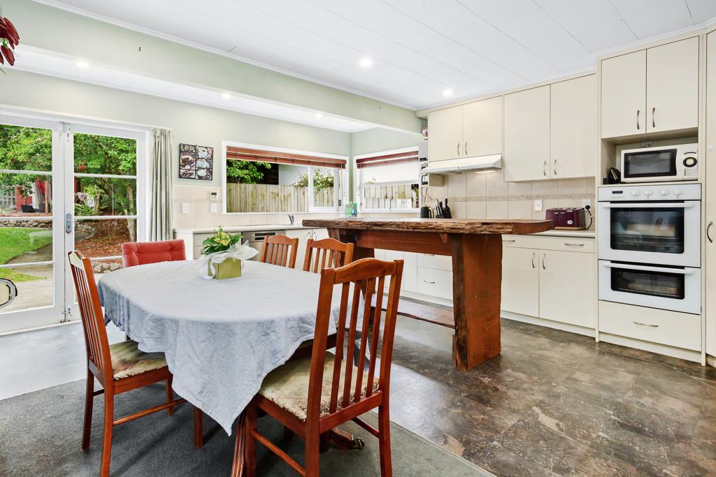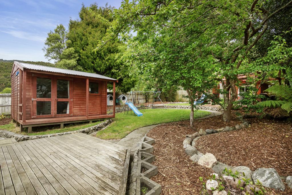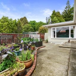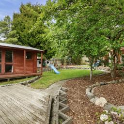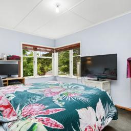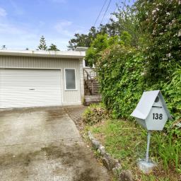 Discover privacy and outdoor appeal with this 3-bedroom weatherboard home set on a generous 827sqm section. Positioned up from the road, a driveway leads to the garage, with raised garden beds welcoming you on approach.