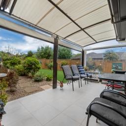 Step inside to a formal open-plan lounge that flows effortlessly into the dining area and out to a covered archgola with clear plastic curtains - perfect for year-round entertaining. The modern entertainer's kitchen features quality appliances and ample storage, making it the heart of the home.