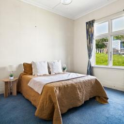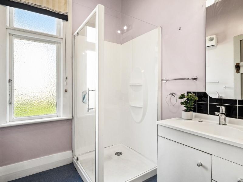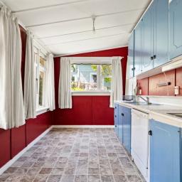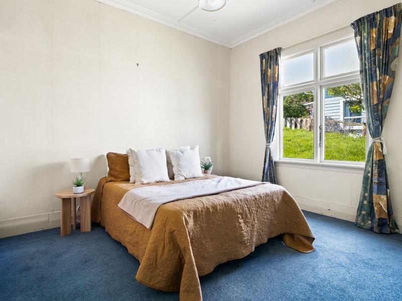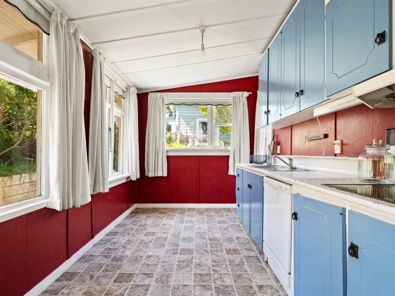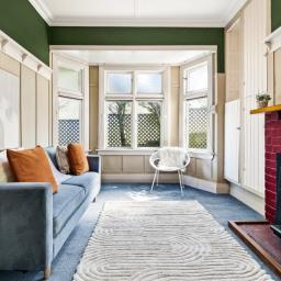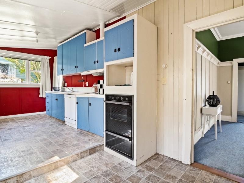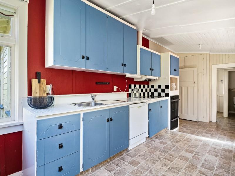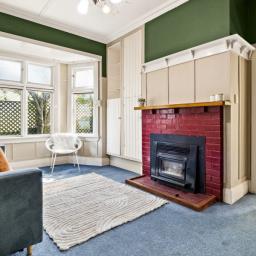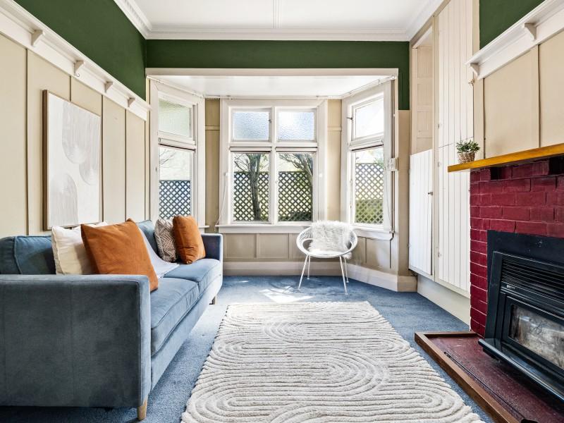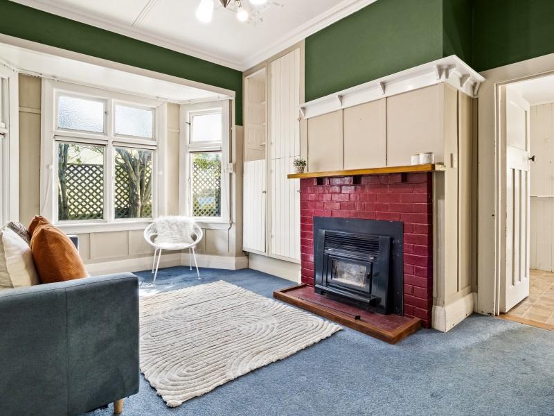 Inside, the home retains delightful character features, including decorative plaster ceilings and beautiful leadlight windows. A wood burner warms the inviting lounge, while a heat pump at the front of the home ensures year-round comfort. The kitchen and dining area look out over a generous rear section.