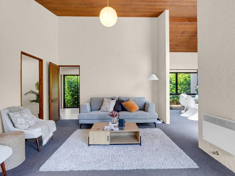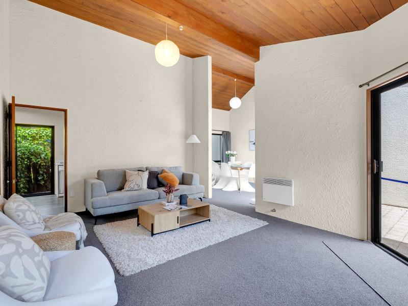 Step inside and be welcomed by high timber ceilings that immediately add warmth and character. The light-filled living area creates an inviting space to unwind, with large windows framing the private garden and sliding doors opening to the sunny patio — perfect for entertaining or enjoying your morning coffee.