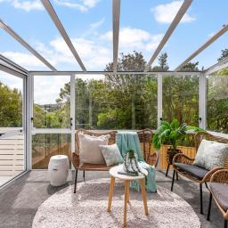 The spacious lounge is bright and welcoming, opening to a sunroom and deck that captures every ray sun, the perfect spot for a relaxing with a glass of wine at the end of a long day.