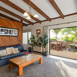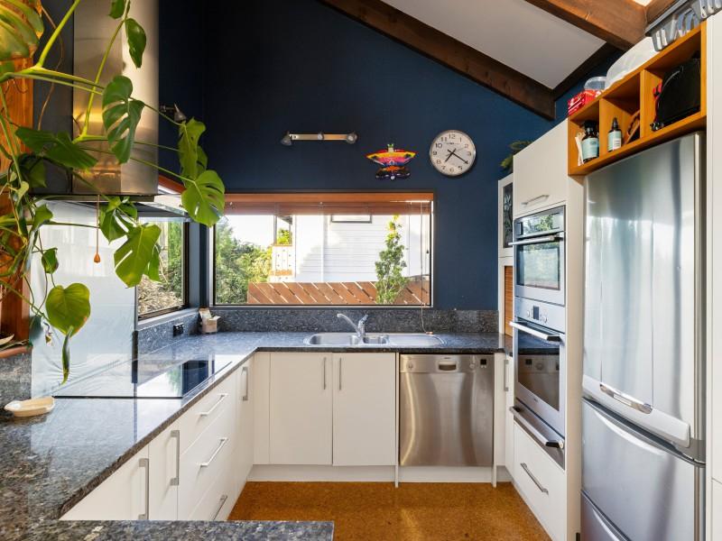 The sun-filled kitchen and dining area features a dishwasher, and tranquil garden views. Opening to the secluded front deck, ideal for morning coffee or drinks with friends. Spacious lounge is enhanced by high ceilings, heat pump, and flows to the deck to enjoy the elevated views and leafy vistas. Continue down the path to trim-kept lawns complete with a handy power point for outdoor leisure. Framed by established tree’s, various fruit tree’s creating an inviting space to kick back and relax.